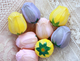 Plastic bulb covers in the shape of tulips.  Can't you just see these with little white lights to celebrate spring?
