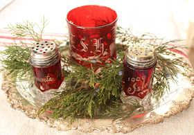 Last year everyone was sticking with their neutrals and white for Christmas, this year I just wanted my red back! The red glass pieces are so interesting, I haven't seen these before! And Judy, I love the idea of blue transferware in the potty! who knew...? Have a wonderful Christmas! xoxo