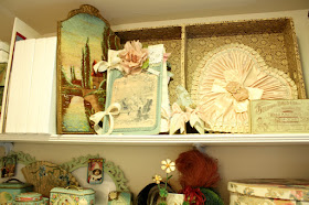 Judy, I can't even tell you how much I love your 'closet.' Mere words just can't express how I feel. Let me just say I could just sit and stare at it for hours and can't even imagine actually being in it. It's heaven!!! I LOVE everything in it, but my very favorite thing has to be that silk ribbon embroidered pincushion...then, next would be all the floral containers...TO DIE FOR! Thanks for sharing your beautiful space!!! pat