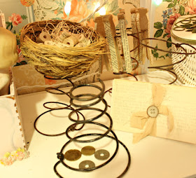 How gorgeous is this? I love the bed spring with the nest holding thread! Too cute! Lovely! Thank you for joining me at Home Sweet Home!