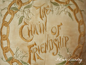 First of all, it has been an astonishing first two weeks of business at my Etsy shop, The French Laundry.  YAY!  Sooooooo good for my psyche and good for my soul.  This being said, I must comment on the dangers of finding your passion, living your bliss, and selling only that which you would love to have in your own home (my words from my Etsy shop "mission statement" if you will).  I WOULD LOVE TO HAVE IT IN MY OWN HOME.  This means, each and every time, each and every purchase I make for the shop, I have to go through what I am embarrassed to admit is a somewhat GUT-WRENCHING-prying-this-stuff-out-of-my-chubby-little-hands-you-bought-it-to-sell-it little disco dance.  Really?  It's stuff.  Stuff I don't need cause I've already got plenty of my own stuff thank you very much.  Sigh...but it's SO pretty.  And when it is in piles, waiting to be photographed and described, it makes such a beautiful mess.  Yes, it does.  Mr. French Laundry, in this case, your opinion does not count.  You call it my piles, I call it a beautiful mess.  Half empty, half full...who is the happier one here, huh?  HUH?  Can you tell I'm having a bit of a dilemma?  I visited with a dear friend of mine one afternoon this past week (yes Sharon, I'm talking about you), and we commented on what kindred spirits we are.  We absolutely love the same things and her "work room" is a room I could enter, shut the door, and stay in for DAYS just looking and marveling at all of the beauty just piled up around me.  I kid you not, it is THAT good.  Maybe one of these days I'll do a photo shoot of her pretty piles.  But seriously, she can buy something amazing and turn right around and sell it, just like that, no fuss, no muss.  But not me.  No, I have to love on it for a while.  Put it somewhere and gaze upon it for a bit until I feel I've absorbed it's beauty and can let it go to a new home (some things have to marinate longer than others, I must admit).  That's just how I roll I guess.  But, once I let something go, I have to say, I've never actually had any regrets.  In fact, I can't say I've ever missed a thing.  Oh well, worse problems to have for sure.