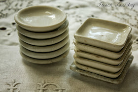 I adore butter pats.. especially the white porcelain ones. Love their weight .. their creamy white... they way they nest perfectly, one into another. And don't you love the glazing that occurs?? Just the best!