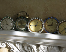 Miss Judy~ These crystal and rhinestone clocks are such a beautiful reminder of collecting time well spent. You almost wouldn't mind being late looking at the hour from all those sparkles.