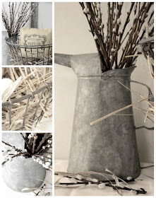 Next, we have a very talented gal, Lara from Air Kisses. Her use of zinc and natural materials is very much in keeping with the romantic prairie style in my humble opinion. Her photo collage showed several lovely elements and captures the simplicity of materials that come together to make a simply beautiful vignette. Lara was just featured in Artful Blogging and you'll want to pop over to see her gorgeous blog where it will become quite evident why she was selected to be in this quality magazine.