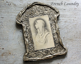 OK, as popular as religious items are now, thanks to the Jeanne d'Arc French Nordic phenomenon, how cool is it that I found an original 100 year old Madonna plaque??? The plaque is made with some type of plaster and the image almost looks like it is printed on metal. It has a date of 1902 on it. I'm thinking of replicating this one of these days. I'll let you know if I have some luck with it.