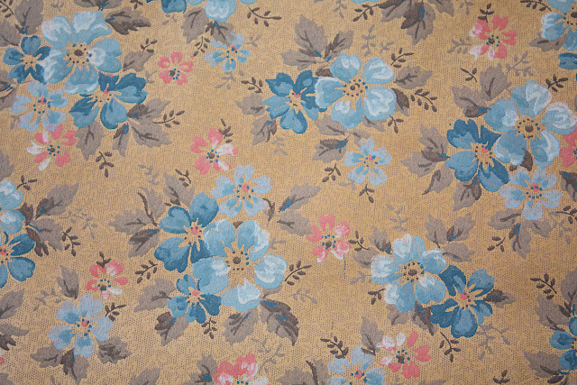 1930's Wallpaper Blue & Pink Flowers on Tan Background