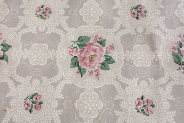 Vintage 1930's Wallpaper Pink Flower Gray Background